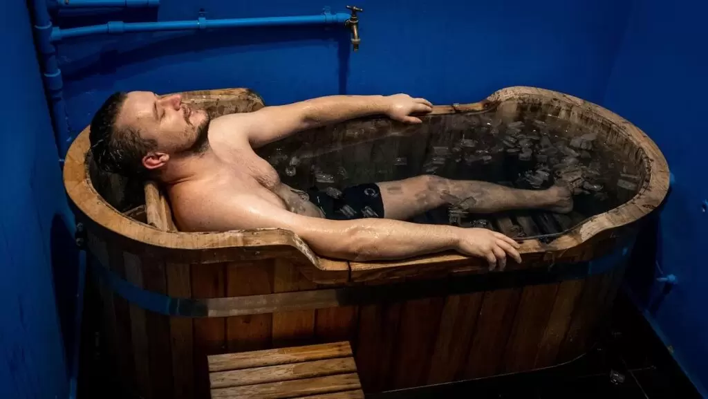 Una vez completada la vaporización y con la temperatura del cuerpo elevada, se pasa a la etapa del cambio térmico. El siguiente paso invita a sumergirse en una pileta de agua helada con cubos de hielo, lo que permite cerrar completamente los poros.
