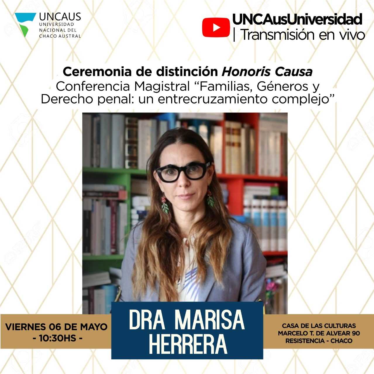 Este viernes, a las 10.30 en el auditorio de la Casa de las Culturas de Resistencia, la Universidad Nacional del Chaco Austral (UNCAUS) concretará en una ceremonia la distinción Honoris Causa a la doctora Marisa Herrera.